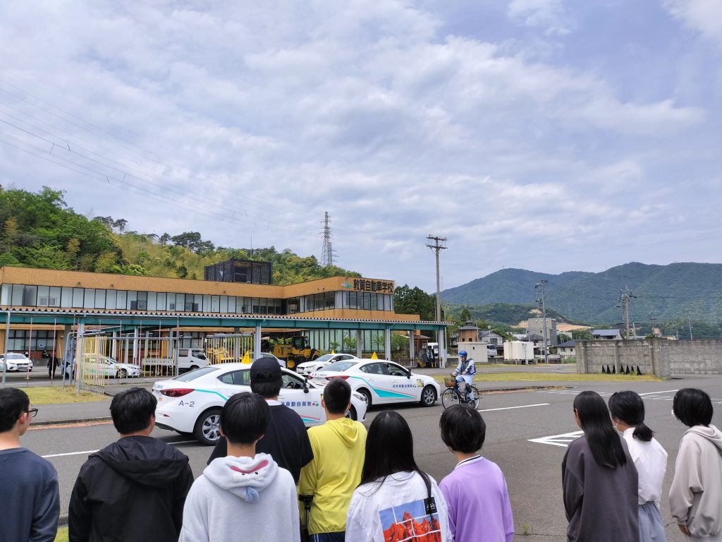 5月17日(金)3・4限目に敦賀自動車学校にて交通安全教室を行っていただきました。トラックの運転席に乗車し、運転手からの見え方や死角となる部分などを教わりました。次に、自転車を運転する際の危ない状況をいくつか見させてもらいました。最後に、自動車に3人ずつ乗り、30キロ走行からの急ブレーキを体験し、シートベルトの大切さを学びました。生徒からは「トラックやバスを運転している人は、横や後ろが見えにくい、見えないということを知り、自転車を運転する際には気をつけよう」「車の近くを自転車で通るときにはドアが開くかもしれないと思ってスピードを落として通過するべきだと思った」「急ブレーキの際の衝撃が想像以上で、特に後部座席に乗っていてもシートベルトをしなければいけないと感じた」という感想がありました。