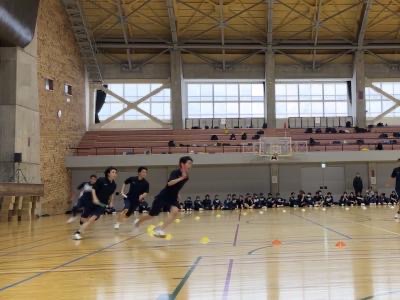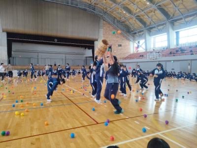 4月23日(水)に1年生スポーツレクリエーション大会が開催されました。開会式では生徒代表からの意気込みとして、「今回は敦賀市立体育館をお借りしてスポーツレクリエーションをするので、この体育館を使わせてもらえることに感謝しながら、今日は精一杯頑張っていきましょう!!」 というあいさつからスタートしました。その後、ラジオ体操(英語Ver)とアイスブレイクをおこない、いよいよ競技開始。内容は玉入れ(先生が籠を持って走ってます×3人)、大縄とび、箱運びリレー、ドッヂボール、男女選抜リレーをクラス対抗でおこない、どのクラスも素晴らしい応援の中、みんなと一致団結し楽しみながら汗を流しました。入学して2週間が経過しましたが、まだまだ緊張した表情が見られる1年生、今日のレクリエーションでクラスメイトや他クラスの友達とも仲が深まったのではないでしょうか。