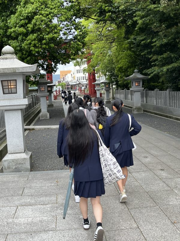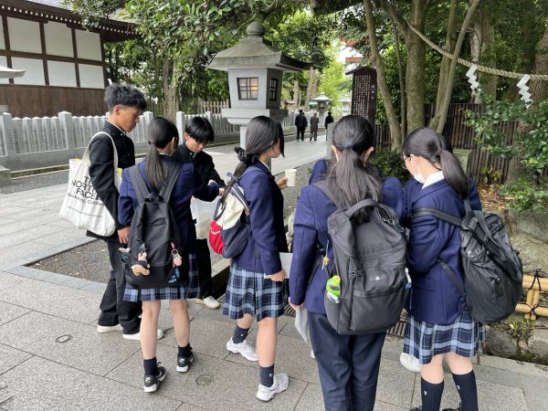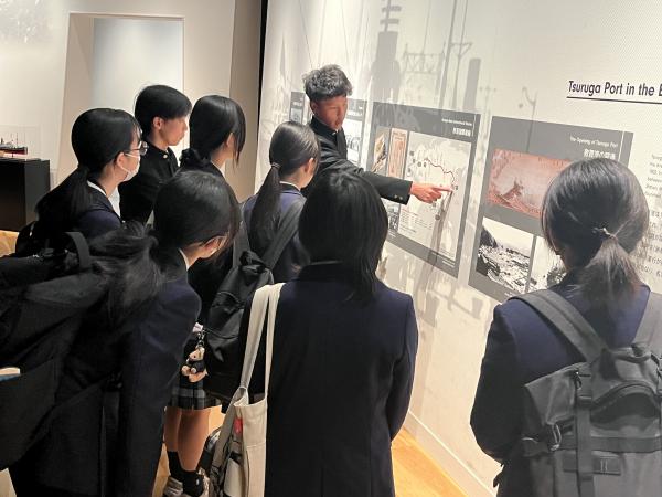 5月9日、3年3ホーム(商業科)が修学旅行で福井にきている富士見高校をアテンドしました。ムゼウム、赤レンガ、氣比神宮、商店街などを丁寧に説明している様子です。