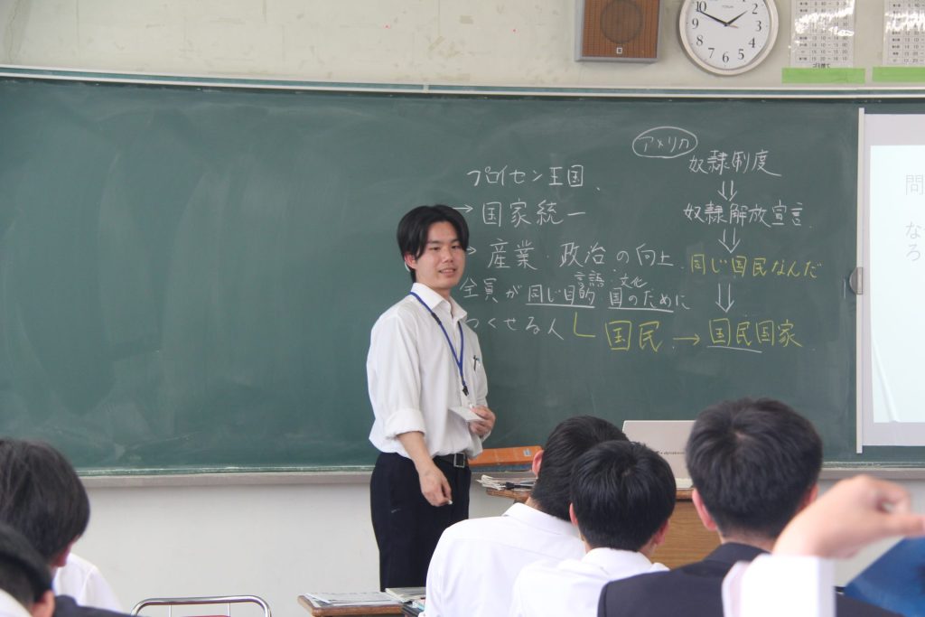 「2週間の教育実習を通して、教員として学校にいることの責任と、教員として生徒と接することの難しさを感じました。授業準備等、忙しい2週間でしたが、日々の生徒との関わり合いが疲れを吹き飛ばしてくれました。」【平岡純太さん(粟野中学校出身)】