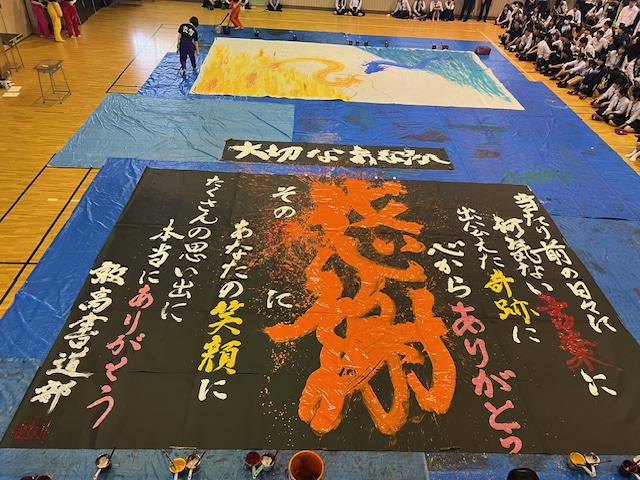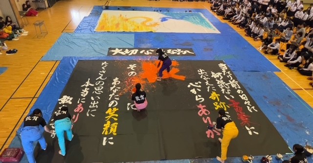 今年度の敦文展では、3年生書道部員の思いの一つだった「一人でも多くの敦高生、保護者の方、先生たちに観てもらう」という念願が叶ったフォーマンスができました。たくさんの方からの拍手や歓声を受け、練習以上のパフォーマンスができたと思います。また、これから機会があれば、もっと多くの方々に観てもらえるよう精進していきたいと思います。ご来場ありがとうございました!