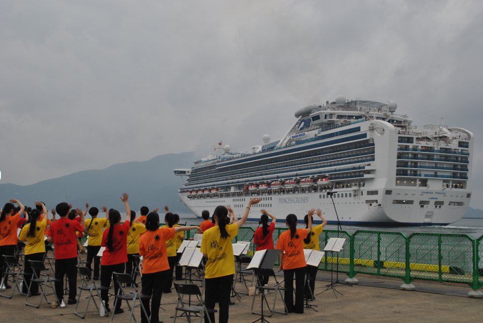 7/5(土)、吹奏楽部、ダイヤモンドプリンセスお見送り演奏 2025年7月5日 最終更新日時 : 2025年7月15日 cmsadmin17 巨大豪華客船のダイヤモンドプリンセスが敦賀にやってきました! 私たち吹奏楽部は、その敦賀を出港する際のお見送り送り演奏をさせていただきました! 素敵な思い出に少しでも花を添えようと笑顔いっぱいのパフォーマンスをしました。 「乗客の皆さんと生徒の皆さんの掛け合いがあったり、演奏後の乗客の反応も大きかったりと、 その場にいる人全員が楽しんでいる様子が伝わってきました!」 と、関係者の方からもうれしい言葉をいただきました! 音楽を通じて、素敵な交流ができました! 貴重な機会をありがとうございました! Follow me! Copy