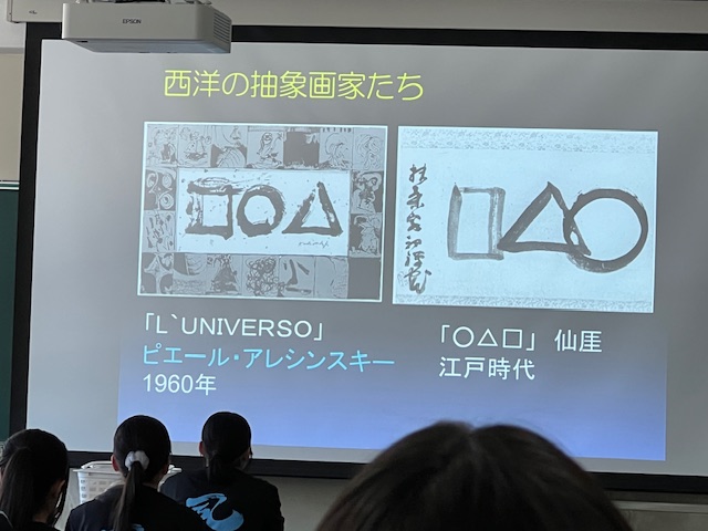 午前中は、先生の書道との関わりのお話から、現代書道への流れをスライドを使って
