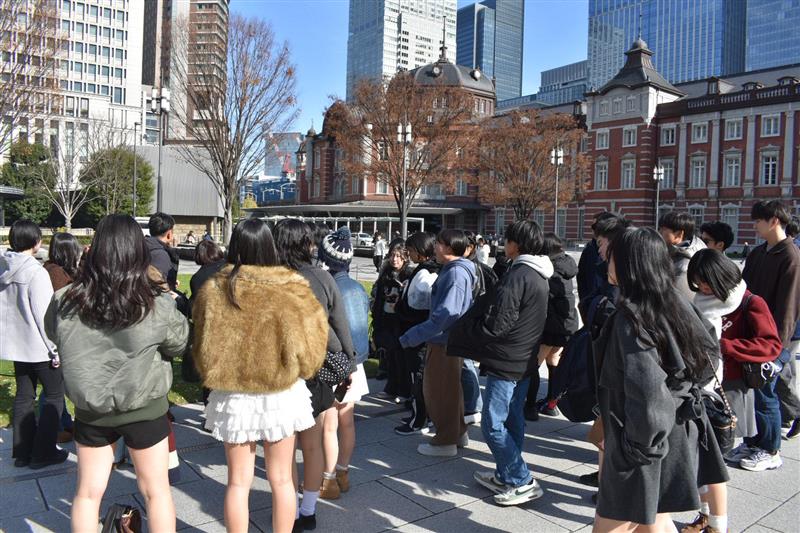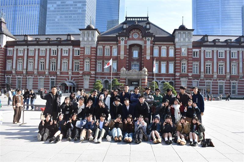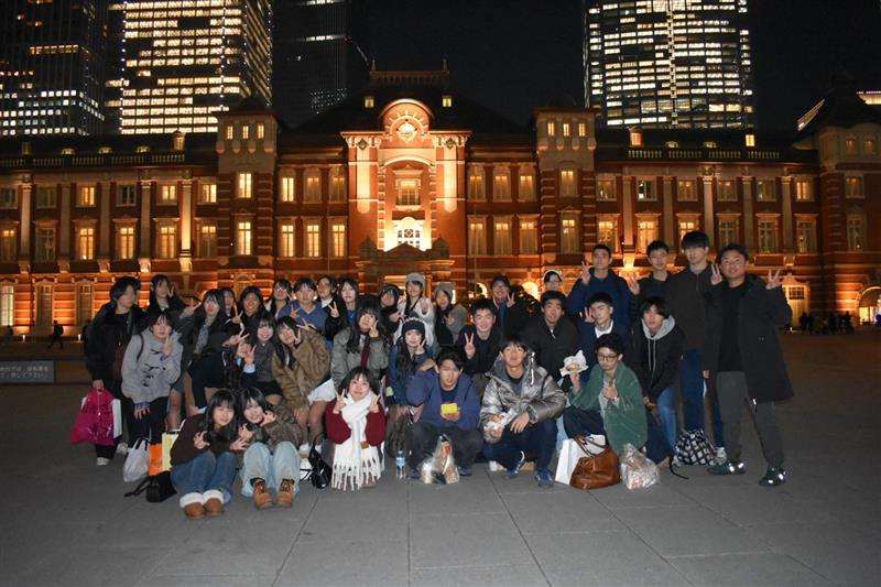 班別研修後の集合時に、ライトアップがきれいだったので東京駅で再度記念写真を撮りました。