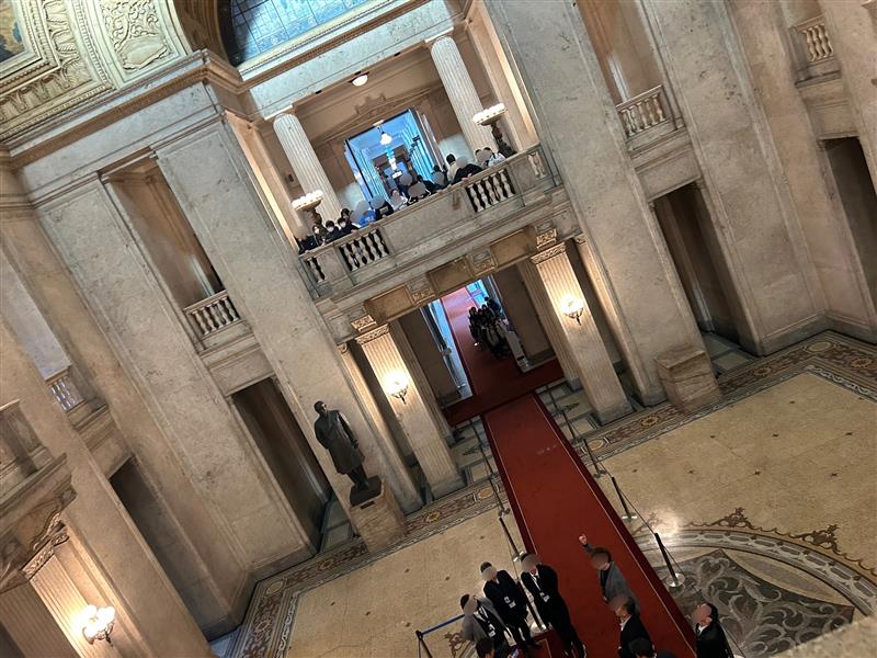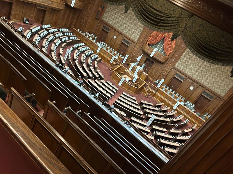 マーセッドカレッジ短期研修事後研修会に参加しました。研修会前半では国会議事堂を見学しました。本会議場や委員会室などを実際に見て回り、日本の政治がどのような場で、どのような手続きを経て進められているのかを学ぶことができました。テレビや資料で見るだけでは分からない国会の雰囲気を体感し、民主主義を支える制度や役割について理解を深める貴重な機会となりました。午後からの事後研修会では、実際に留学を経験した生徒から、現地での授業の様子や生活、文化の違いについて具体的な話を聞くことができました。英語で積極的に交流する姿勢や挑戦する大切さが伝わり、今後の進路や学習への意欲を高める有意義な報告会となりました。