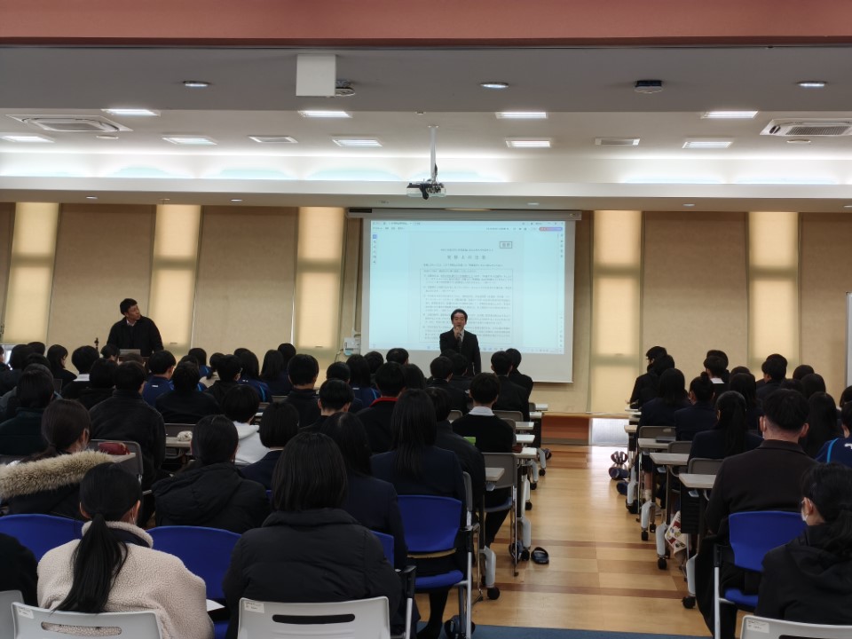 共通テスト本番を今週末に控え、説明会が本校飛躍にて開かれました。