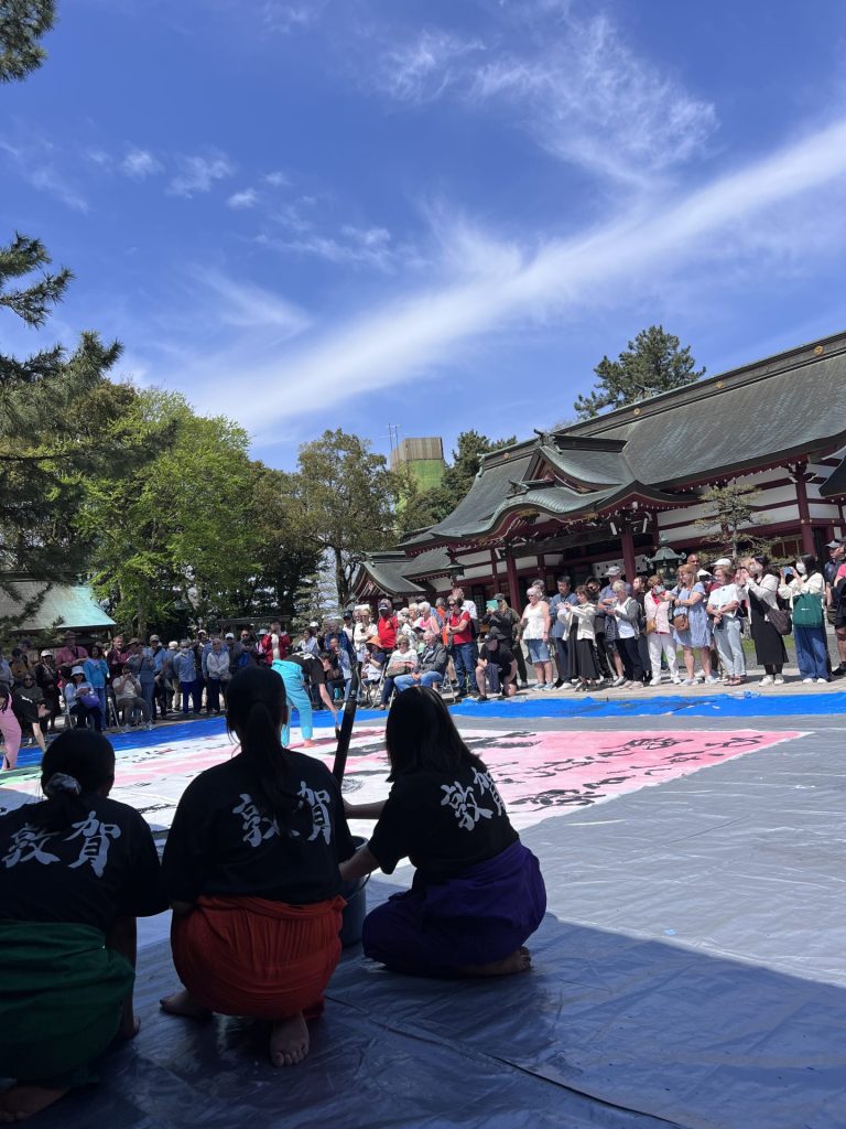 【書道部】クルーズ客船「ウエステルダム」寄港イベント 2026年4月9日 最終更新日時 : 2026年4月9日 cmsadmin17 4月6日、敦賀に「ウエステルダム」号が再びやってきました! 敦賀高校書道部は、無料書道教室と書道パフォーマンスを行って きました。天気にも恵まれ、たくさんの方にパフォーマンスを観ていただいて 大変感激しました。また、多くの方々が「平和」という言葉を書きたがって いたのは、やはり、昨今の世界情勢をすごく反映しているのだなあと感じました。 Follow me! Copy