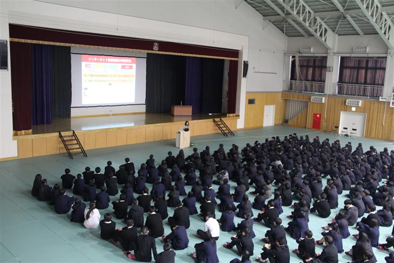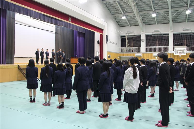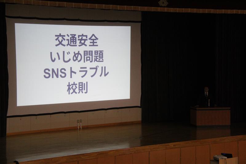 新任式に続き始業式が行われ、校長先生から「挑戦することの大切さ」についてのお話がありました。 生徒たちは、進級した自覚を胸に、真剣な表情で耳を傾けていました。その後、敦賀警察署の方から自転車の乗り方と、SNSの利用についての講話がありました。